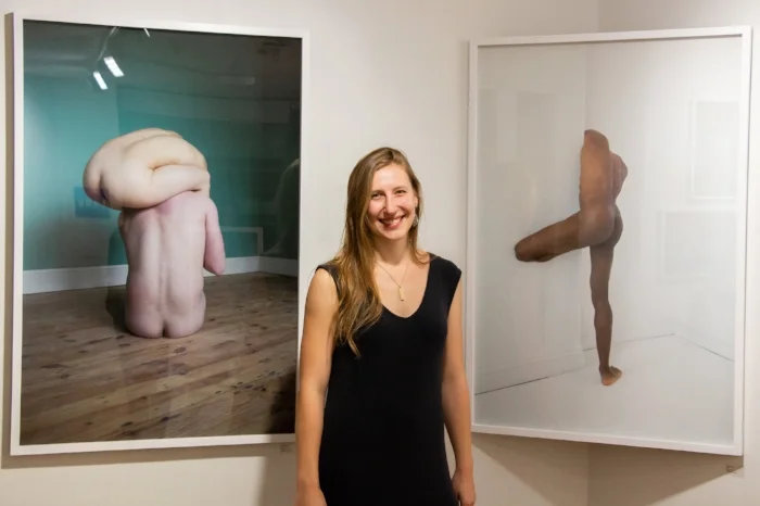 with the body. In these photographs, what should be intimately familiar is transformed into unfamiliar sculptures that critique body image social norms.
